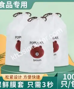 Màng bọc thực phẩm đa năng có chun co giãn, set 100 cái kèm túi gấu – Thùng 200 túi